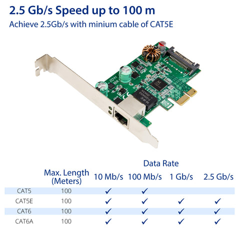 Provides 2.5 Gigabit Ethernet Connectivity to Mac Pro Towers and Windows PCs. Simple way to add or expand 2.5 Gigabit Ethernet connectivity to any compatible computer. It is suitable for multiple market segments and emerging applications, such as desktop, mobile, workstation, server, communications platforms, and embedded applications.