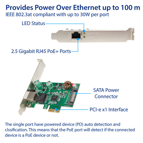 2.5 Gigabit 802.3at POE+ Ethernet PCI-e x1 Card
