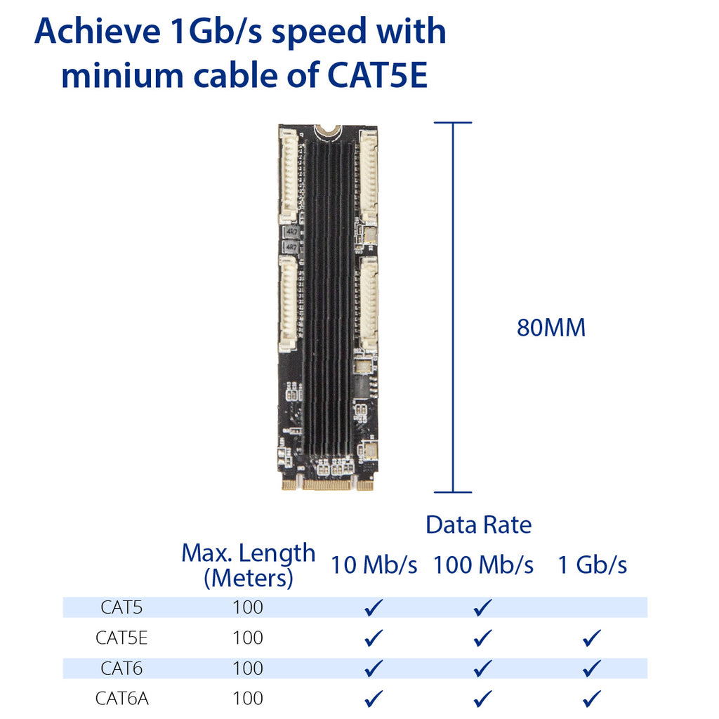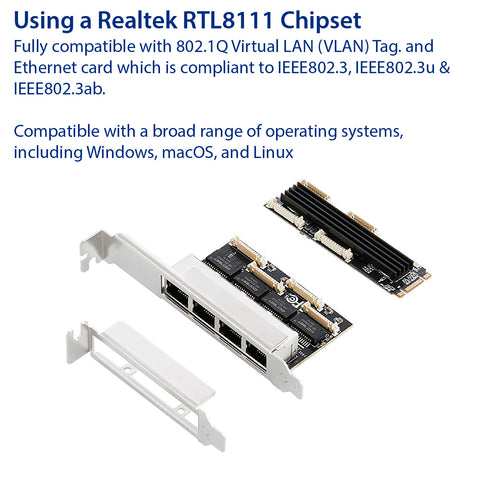 The 4 Port Gigabit M.2 M+B Key Ethernet Module is a high-performance networking solution designed to enhance connectivity and data transfer capabilities in a wide range of computing environments. Leveraging the power of the Realtek RTL8111H chipset, this Ethernet card delivers robust Gigabit Ethernet connectivity, making it ideal for applications where speed, reliability, and versatility are paramount.