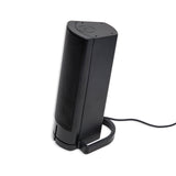 The speaker can be place vertical or merged together to create a compact speaker that can be easily fit under any monitor or TV. The volume control can be easily reach front the face of the speaker which is also next to the power switch.