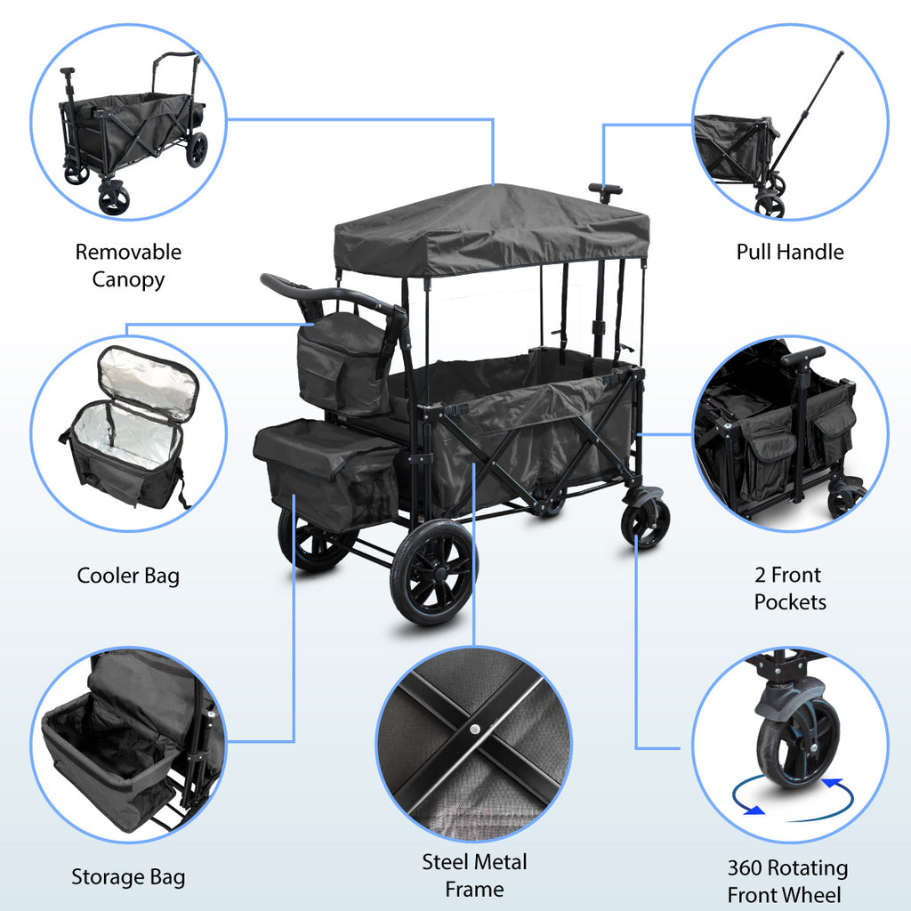 - Heavy duty and large storage capacity to haul all the things you need for your trip or event. One seat belt inside wagon