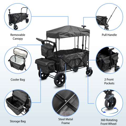 NOVALIFE Stroller Outdoor Large Collapsible Wagon Cart is the best choice wagon for all your outdoors activities, at the park, beach, garden, or swap meet.