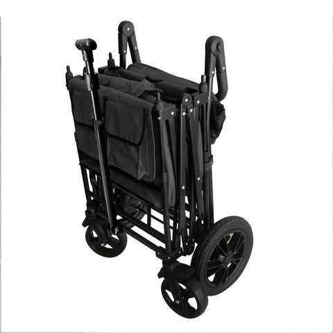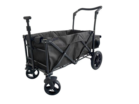 - Folds up compactly for storage or transport. One pull action to fold up wagon.