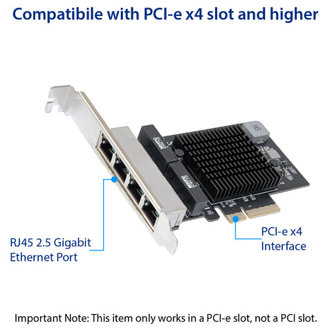 Provides Quad 2.5 Gigabit Ethernet Connectivity to Mac Pro Towers and Windows PCs. Simple way to add or expand 2.5 Gigabit Ethernet connectivity to any compatible computer. It is suitable for multiple market segments and emerging applications, such as desktop, mobile, workstation, server, communications platforms, and embedded applications.