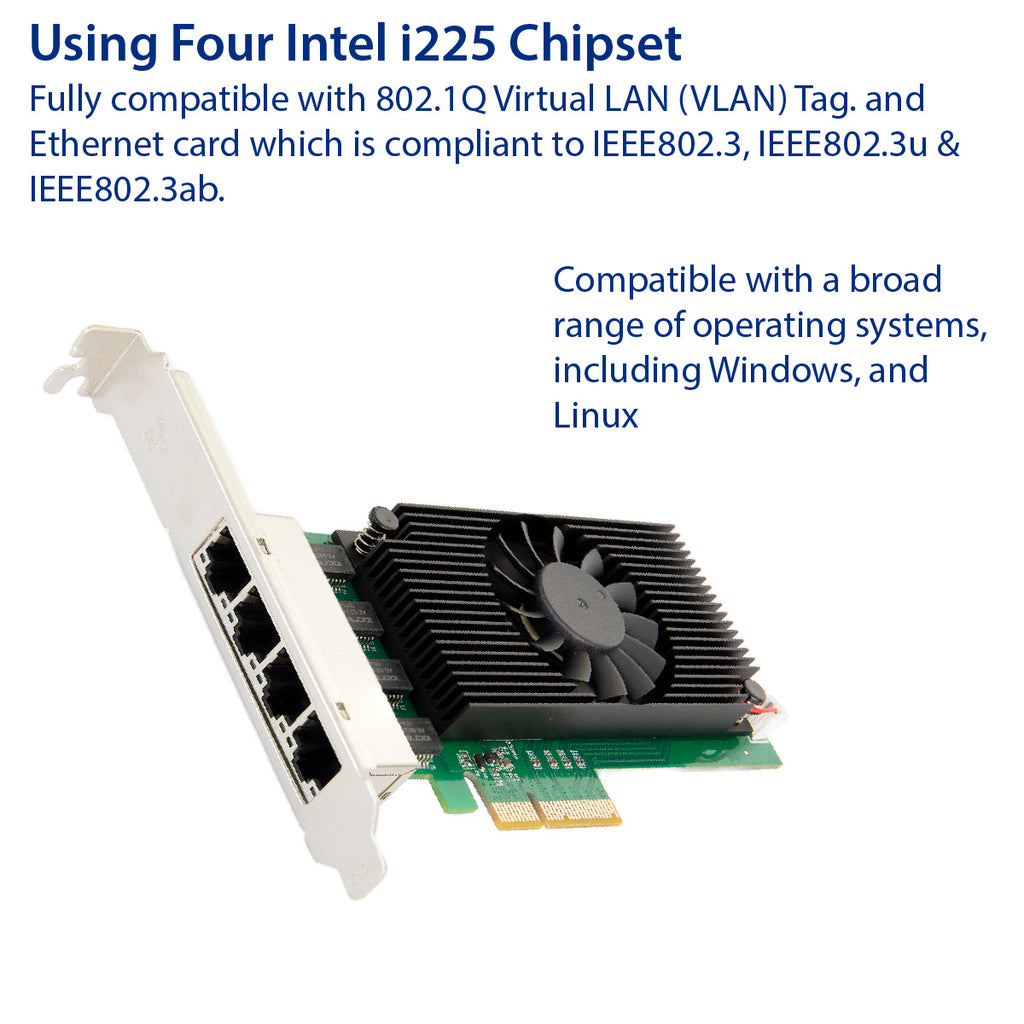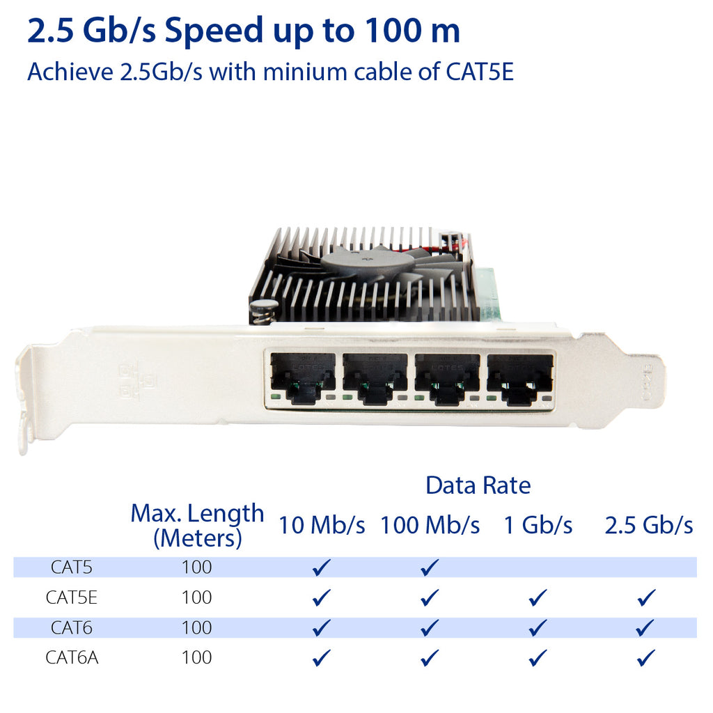 Provides Quad 2.5 Gigabit Ethernet Connectivity to Mac Pro Towers and Windows PCs. Simple way to add or expand 2.5 Gigabit Ethernet connectivity to any compatible computer. It is suitable for multiple market segments and emerging applications, such as desktop, mobile, workstation, server, communications platforms, and embedded applications.