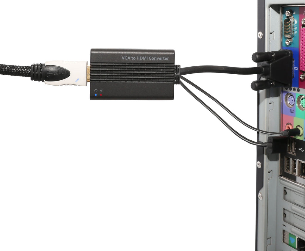 .This is an integrated VGA & Audio to HDMI converter. Allows you to enjoy your games, movies, and other media on your HDTV with a high quality transfer rate and easy to use installation.